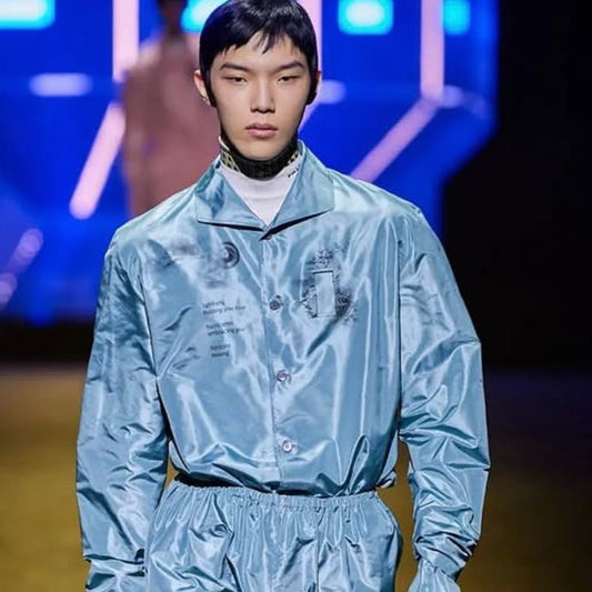 Prada A/W22 Blue Silk Printed Button-Up