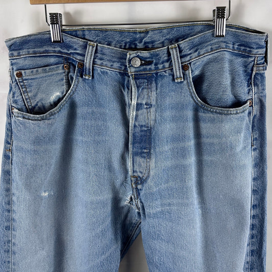 Levi's 501 Light Wash Distressed Denim Jeans