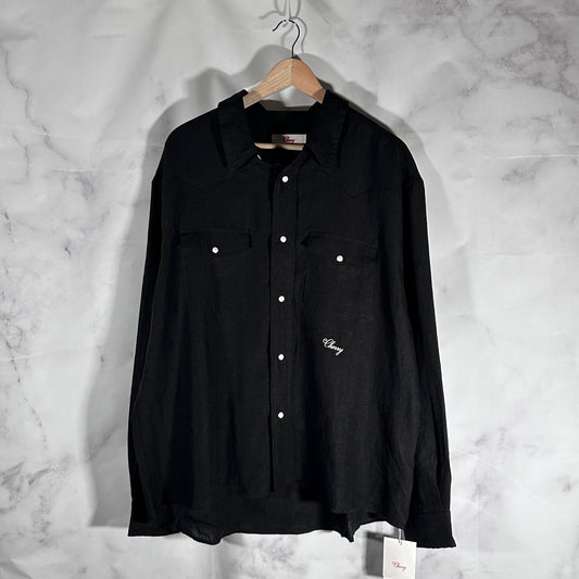 Cherry LA Washed Black Linen Western Shirt