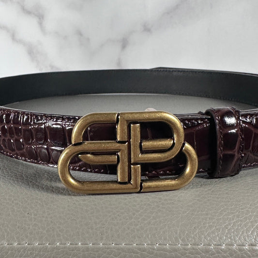 Balenciaga BB Shiny Croc Embossed Leather Belt